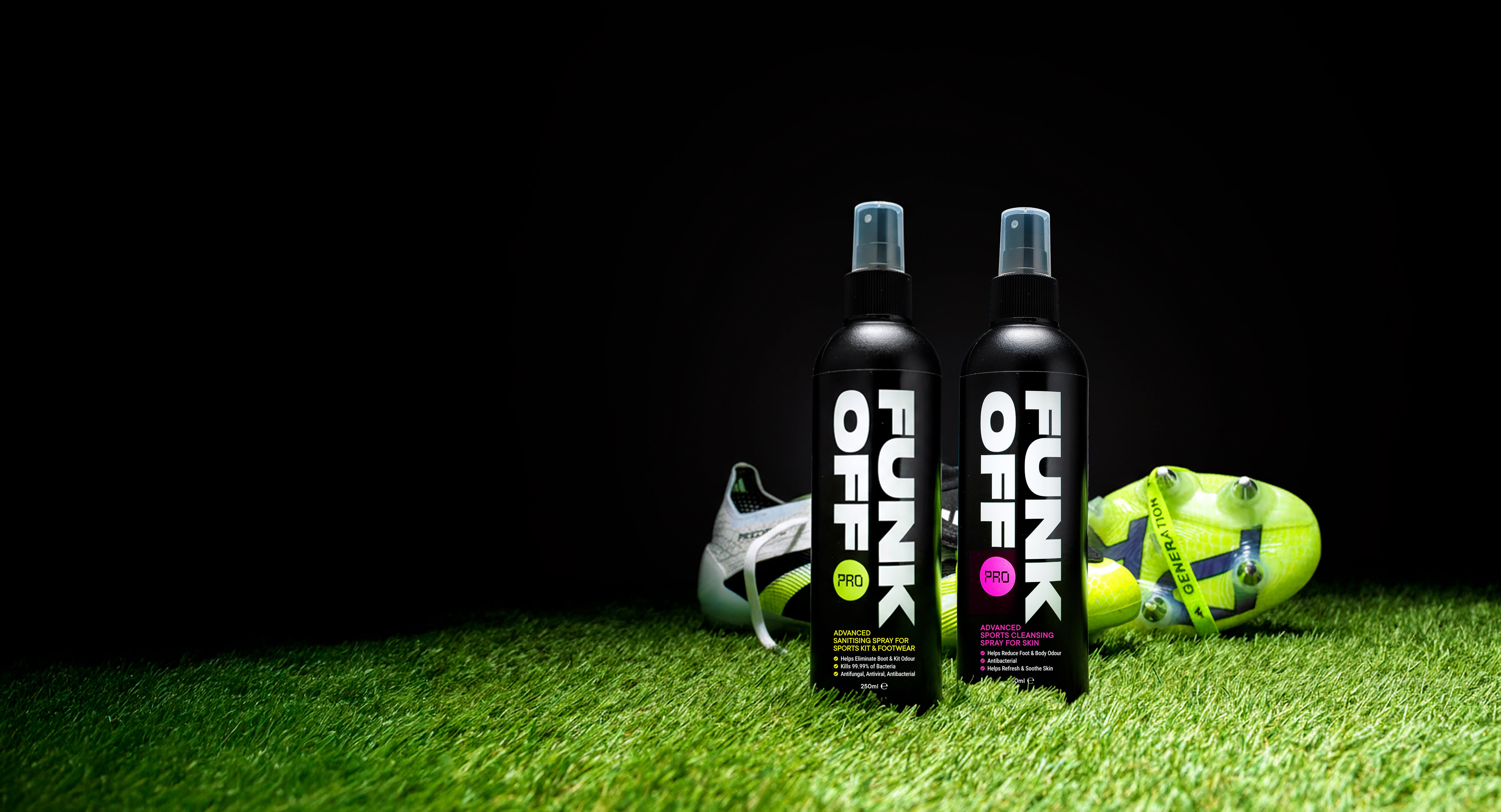 Funk Off PRO gives you the clean confidence to focus on performance, not problems. Use our cleansing spray on your skin and our sanitising spray in your boots, gloves or gym bag — and stay fresh, protected and ready to move.